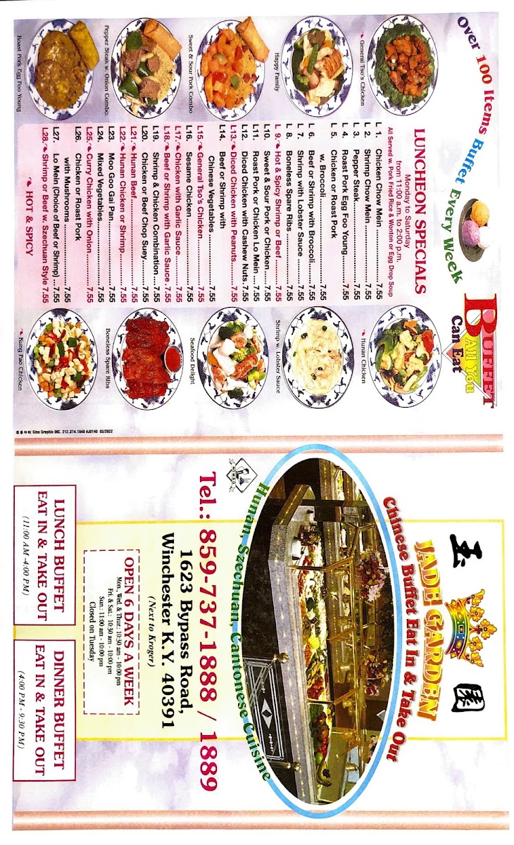 Welcome to Jade Garden Winchester, a culinary gem located at 1623 Bypass Rd, Winchester, KY. This family-friendly restaurant is renowned for its all-you-can-eat buffet, which includes a refreshing variety of dishes that reflect authentic Chinese cuisine. Some standout offerings include Crab Rangoon, known for being the best around, and savory favorites like Curry Chicken with Onion and General Tso's Chicken.